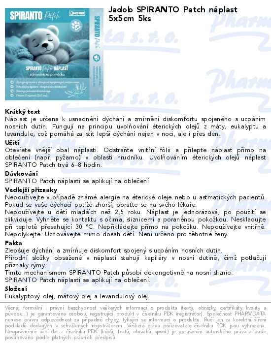 Jadob SPIRANTO Patch náplast 5x5cm 5ks