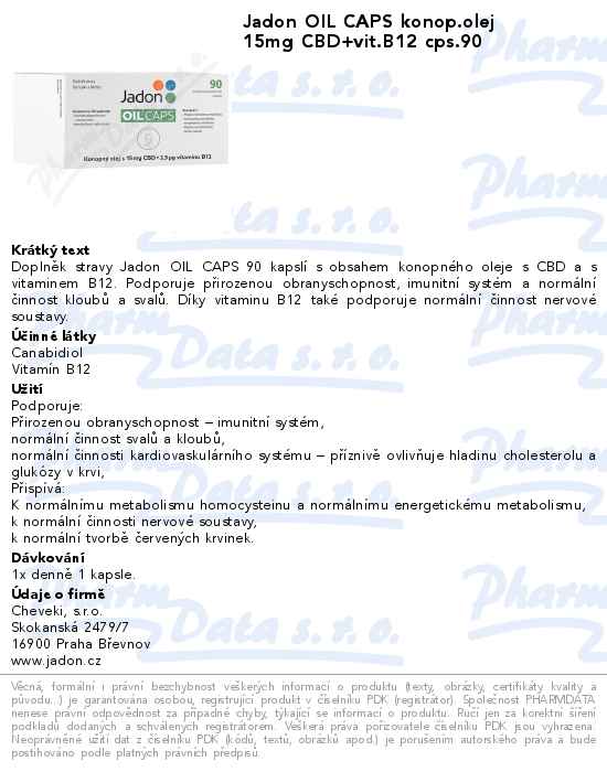 Jadon OIL CAPS konop.olej 15mg CBD+vit.B12 cps.90