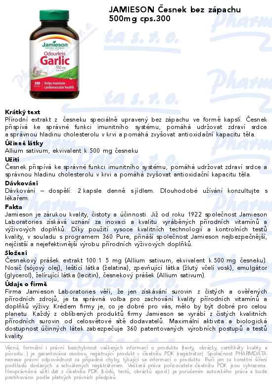 JAMIESON Česnek bez zápachu 500mg cps.300