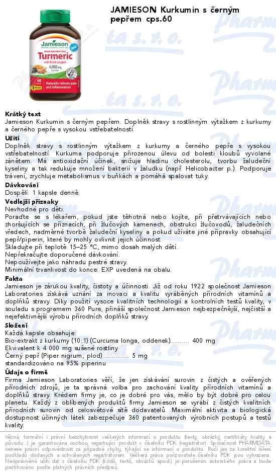 JAMIESON Kurkumin s černým pepřem cps.60