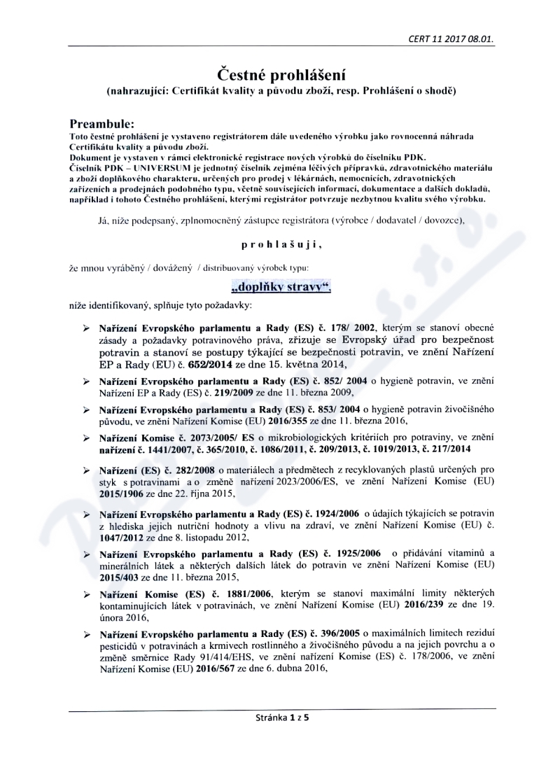5 strany čestného prohlášení: strana 1, strana 2, strana 3, strana 4, strana 5,