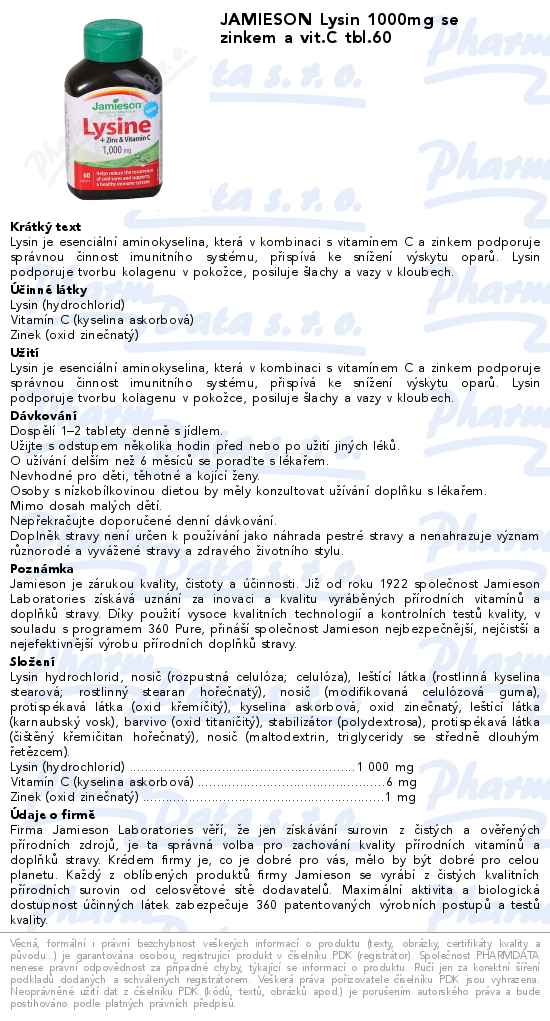 JAMIESON Lysin 1000mg se zinkem a vit.C tbl.60