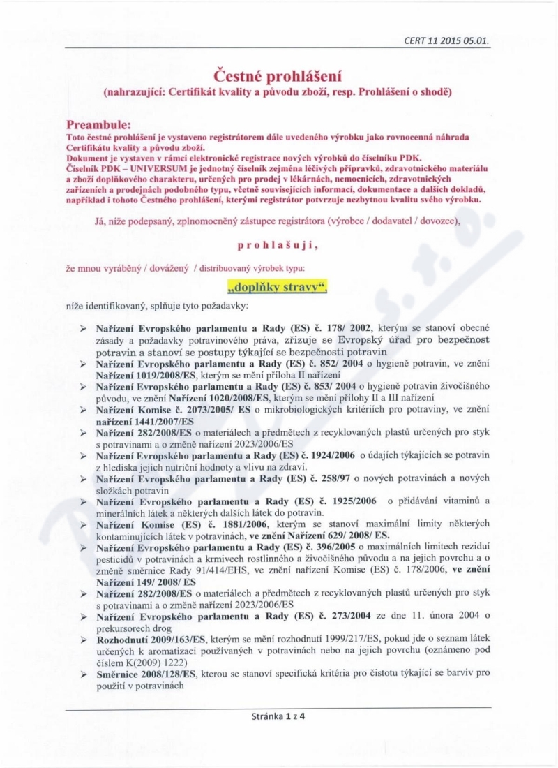 4 strany čestného prohlášení: strana 1, strana 2, strana 3, strana 4,