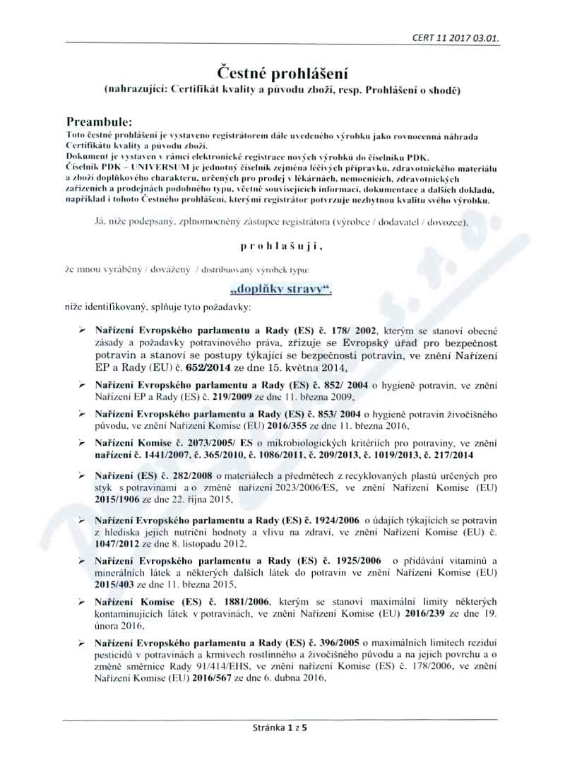 5 strany čestného prohlášení: strana 1, strana 2, strana 3, strana 4, strana 5,