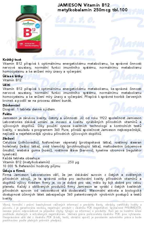 JAMIESON Vitamín B12 metylkobalamín 250mcg tbl.100