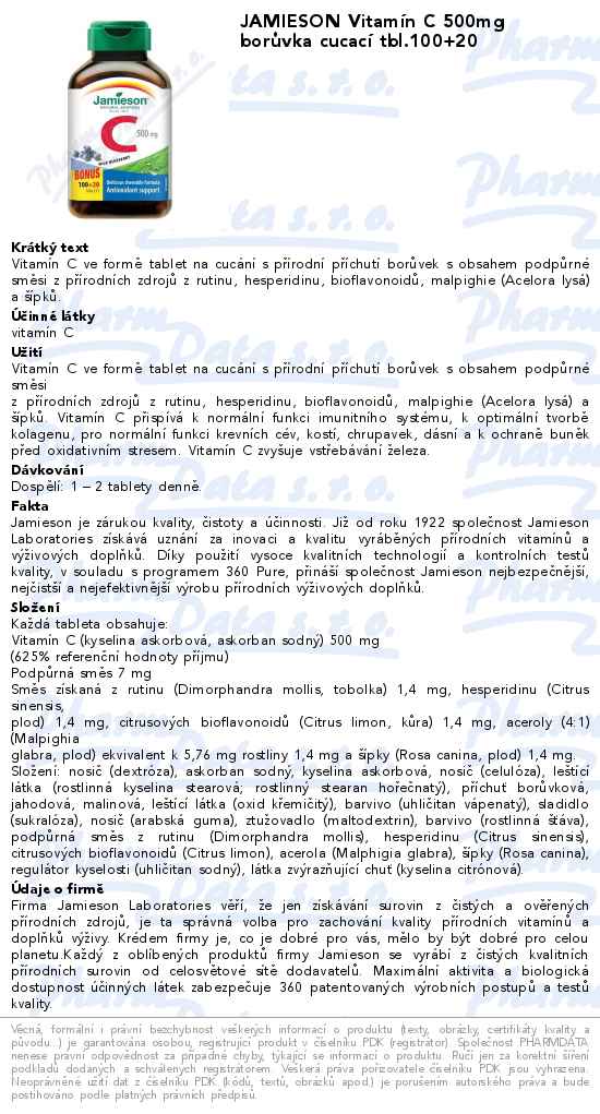 JAMIESON Vitamín C 500mg borůvka cucací tbl.100+20