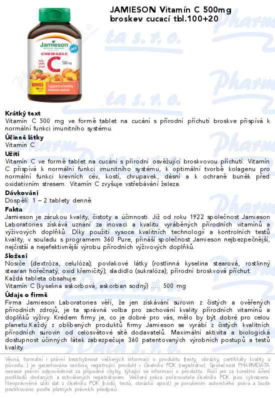 JAMIESON Vitamín C 500mg broskev cucací tbl.100+20