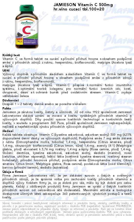 JAMIESON Vitamín C 500mg hr.víno cucací tbl.100+20