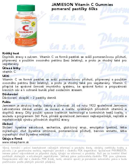 JAMIESON Vitamín C Gummies pomeranč pastilky 60ks