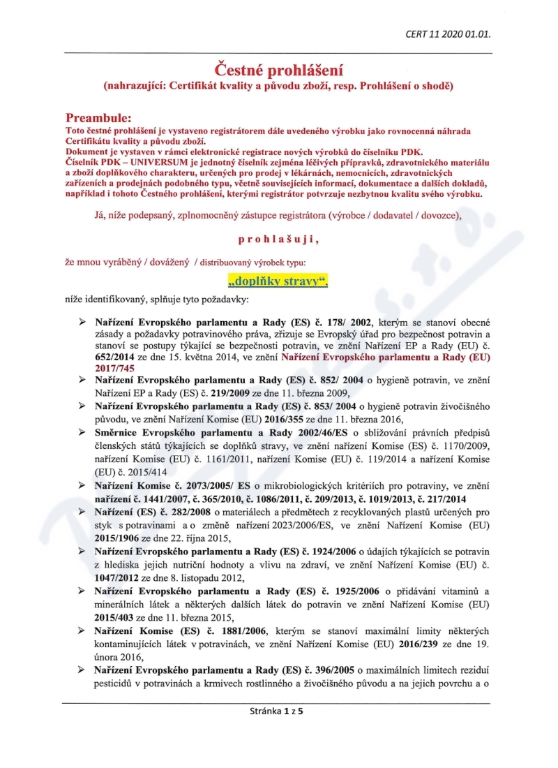 5 strany čestného prohlášení: strana 1, strana 2, strana 3, strana 4, strana 5,