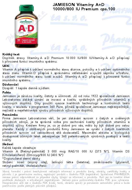 JAMIESON Vitamíny A+D 10000/800 IU Premium cps.100
