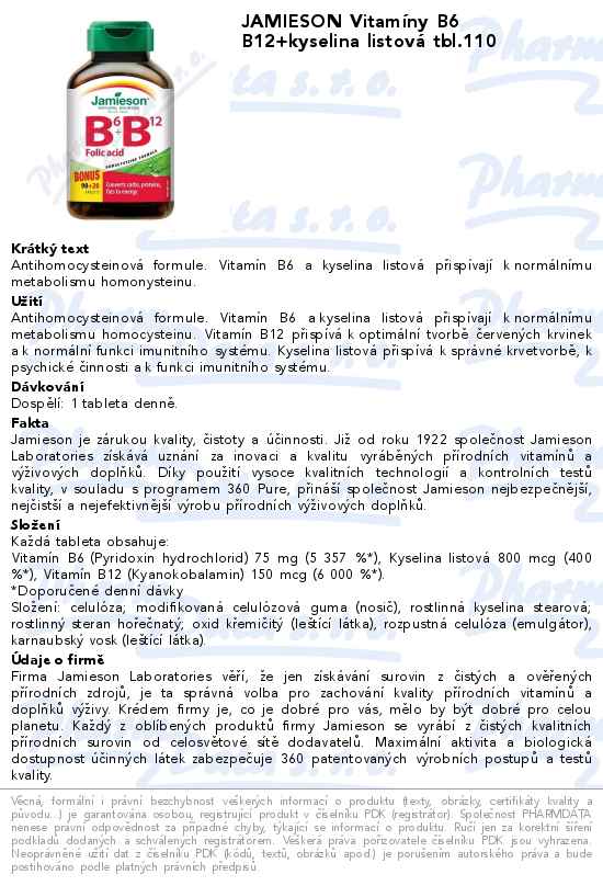 JAMIESON Vitamíny B6 B12+kyselina listová tbl.110