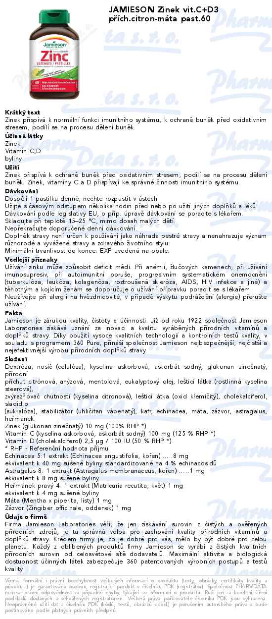 JAMIESON Zinek vit.C+D3 přích.citron-máta past.60