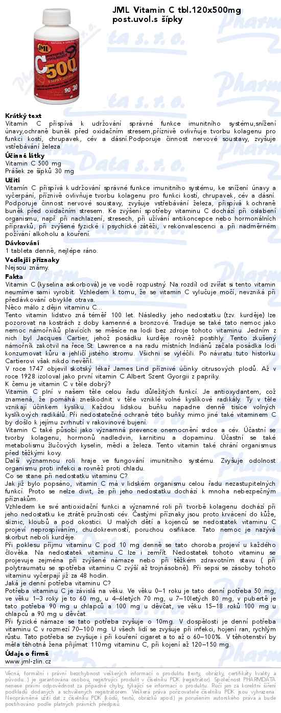 JML Vitamin C tbl.120x500mg post.uvol.s šípky