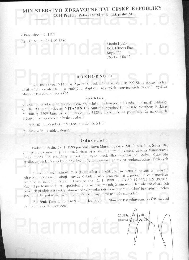 2 strany osvědčení hlavního hygienika: strana 1, strana 2,