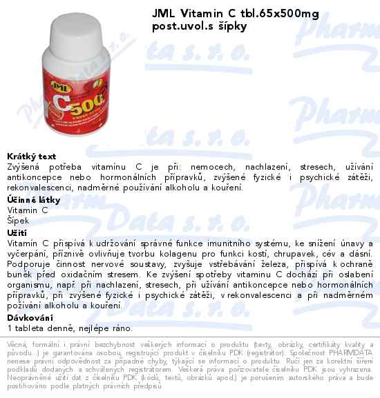 JML Vitamin C tbl.65x500mg post.uvol.s šípky