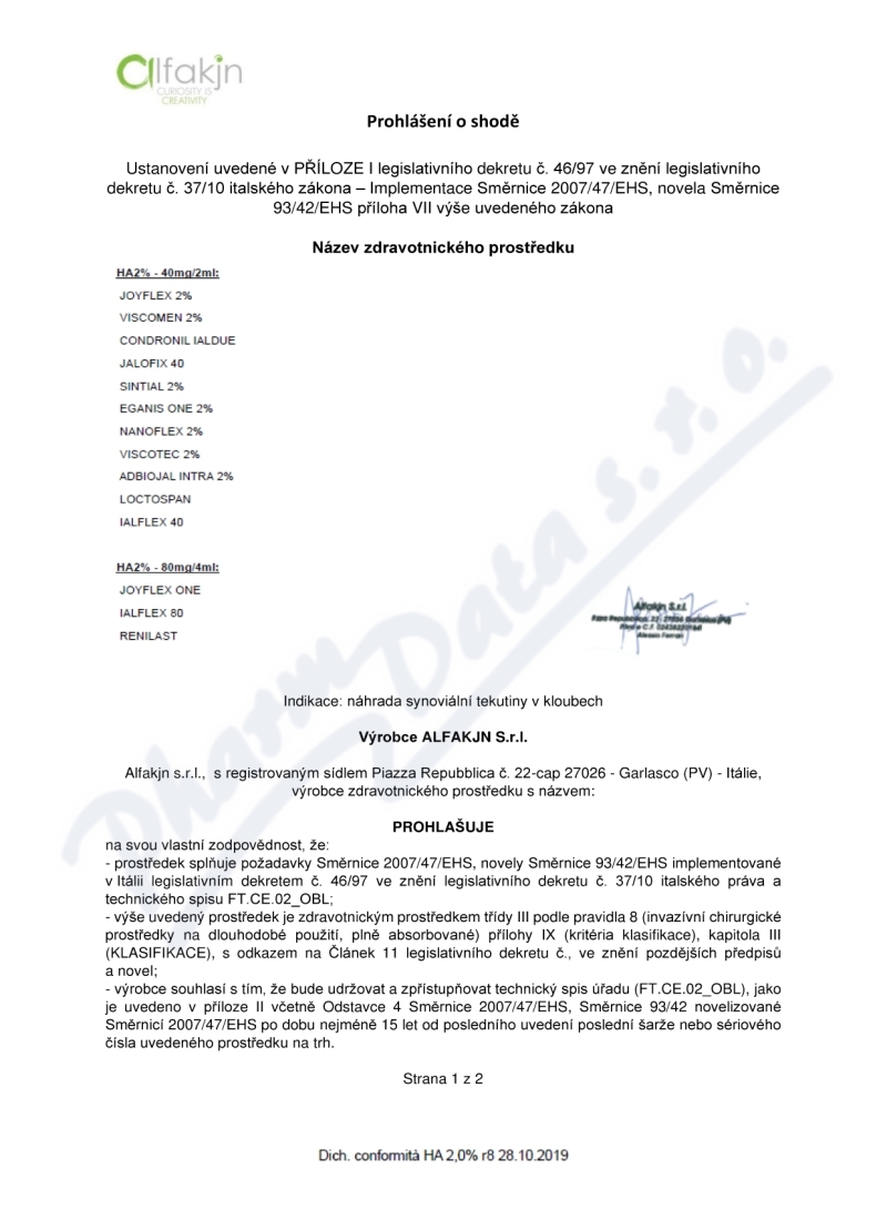 2 strany prohlášení o shodě: strana 1, strana 2,