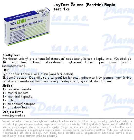 JoyTest Železo (Ferritin) Rapid test 1ks