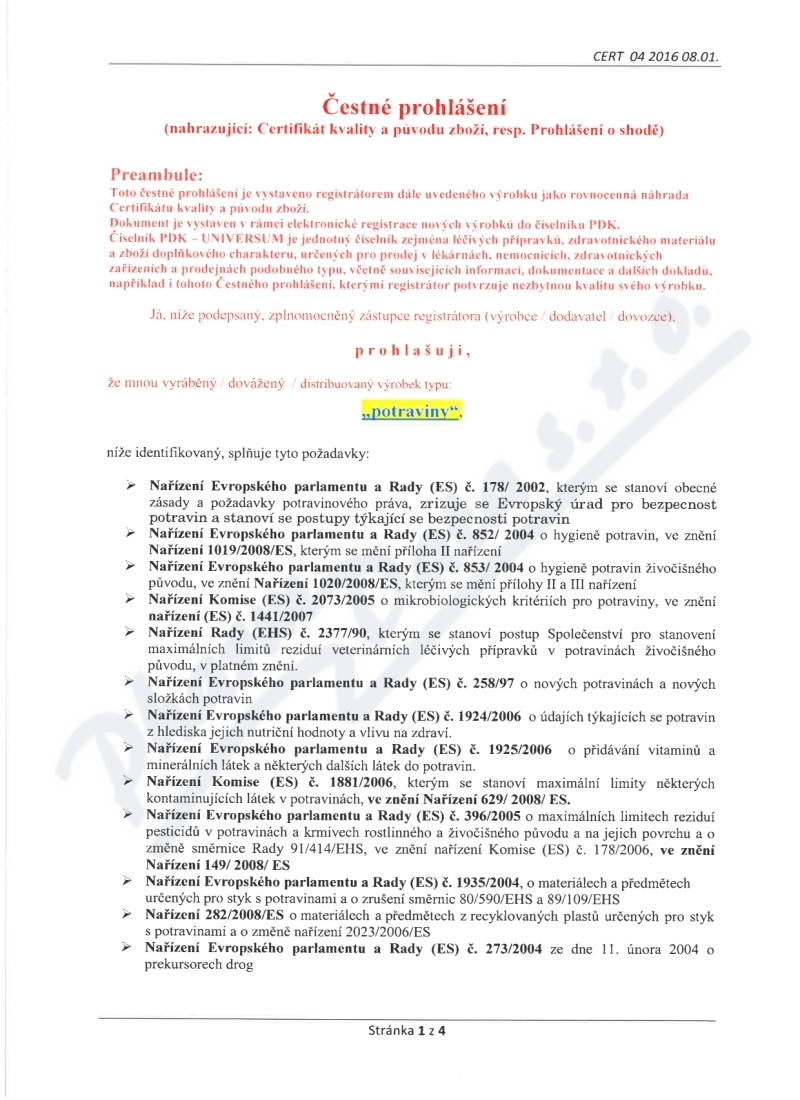 4 strany čestného prohlášení: strana 1, strana 2, strana 3, strana 4,