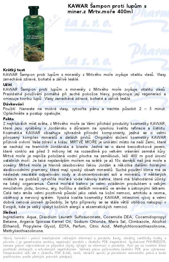 KAWAR Šampon proti lupům s miner.z Mrtv.moře 400ml