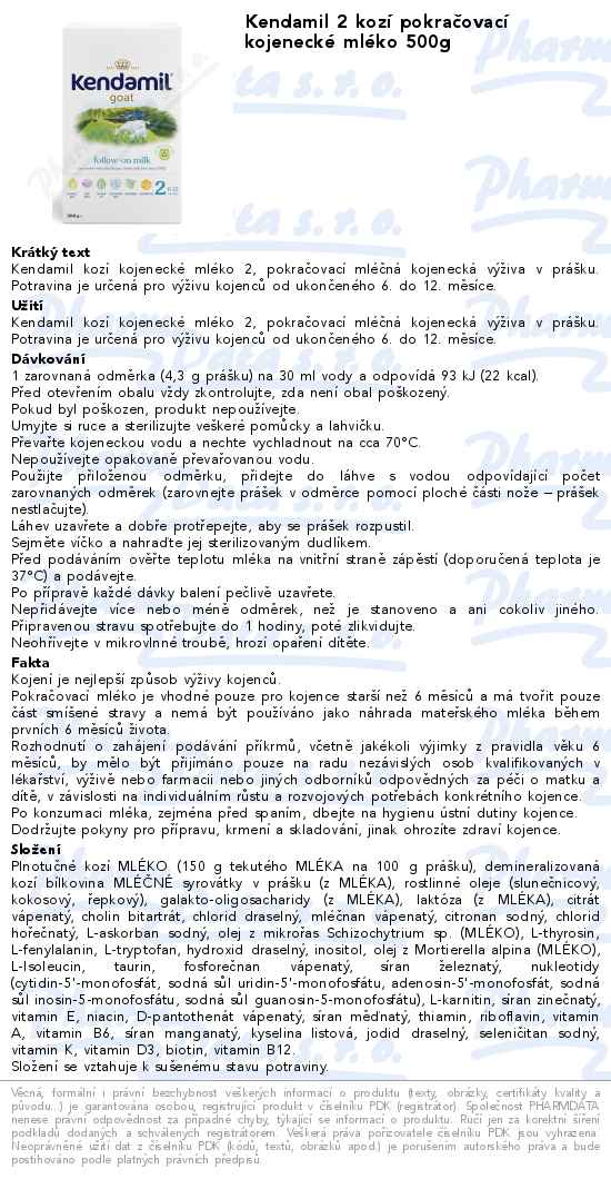 Kendamil 2 kozí pokračovací kojenecké mléko 500g