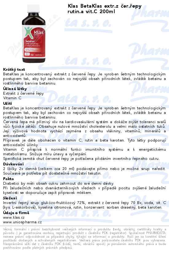 Klas BetaKlas extr.z čer.řepy rutin.a vit.C 200ml