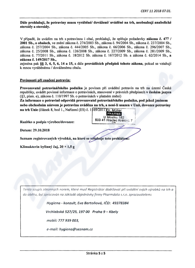 Výrobce: Dr. Müller Pharma s.r.o., Hradec Králové