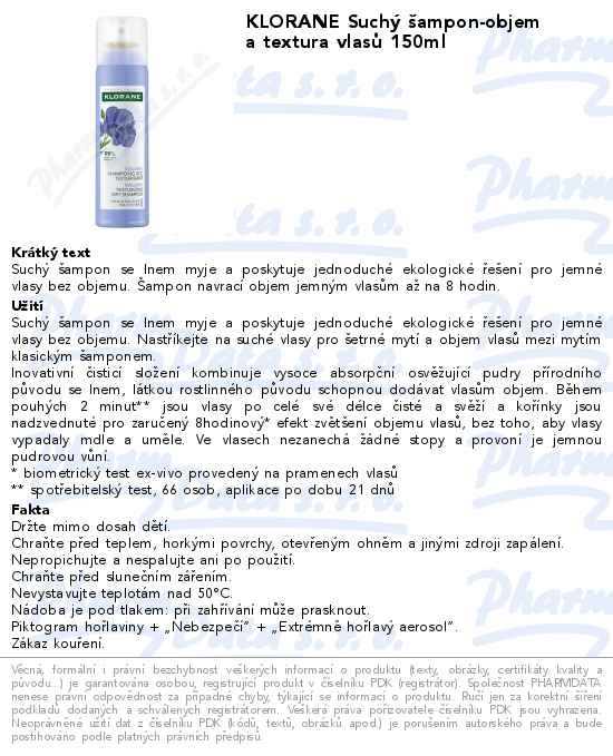 KLORANE Suchý šampon-objem a textura vlasů 150ml