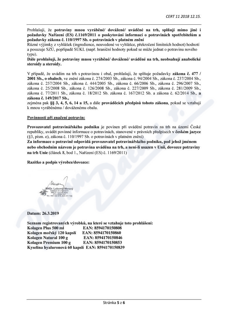 6 strany čestného prohlášení: strana 1, strana 2, strana 3, strana 4, strana 5, strana 6,