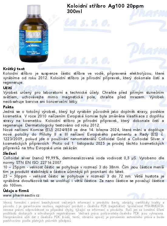 Koloidní stříbro Ag100 20ppm 300ml