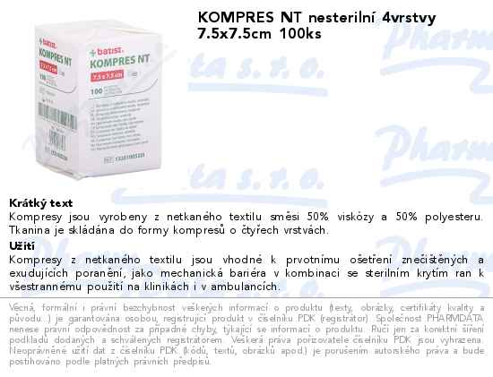 KOMPRES NT nesterilní 4vrstvy 7.5x7.5cm 100ks