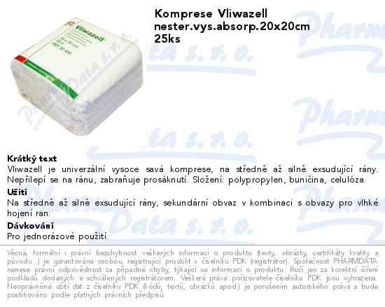 Komprese Vliwazell nester.vys.absorp.20x20cm 25ks