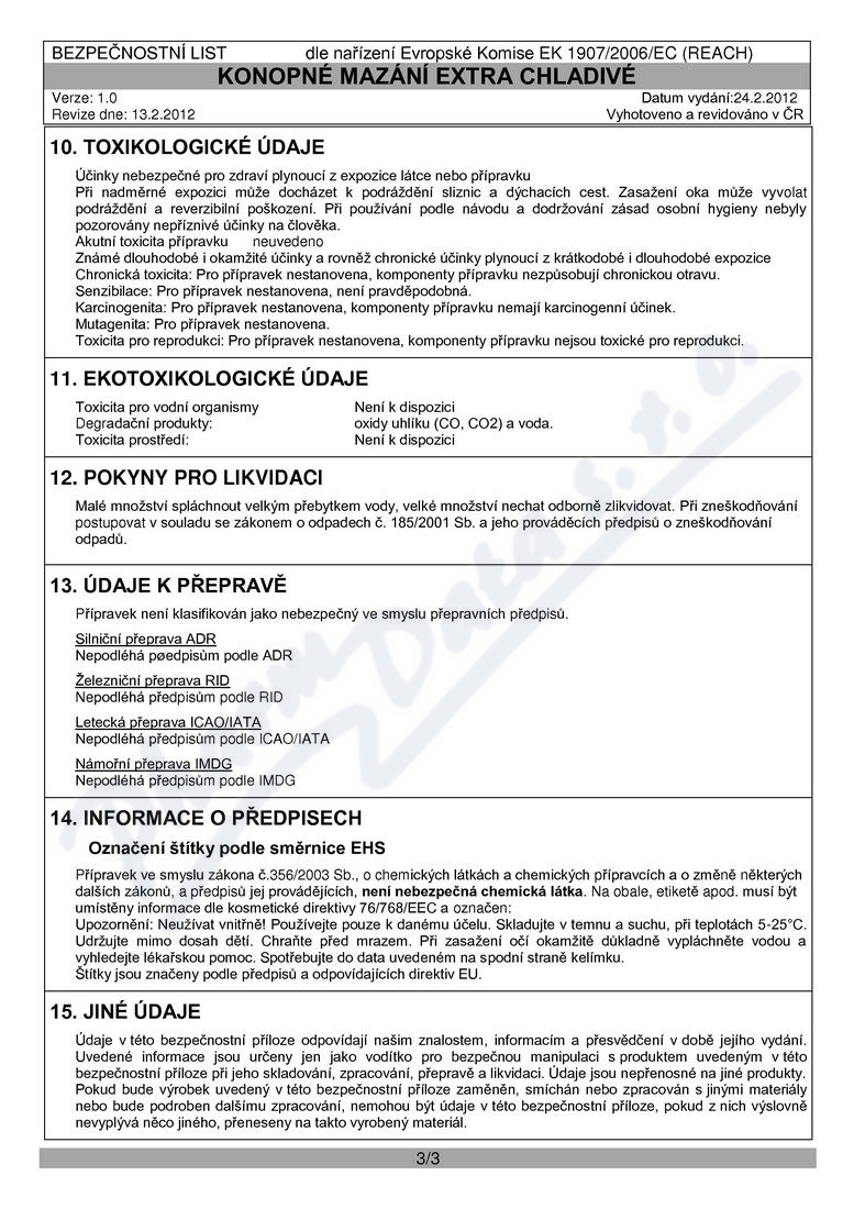 3 strany bezpečnostních listů: strana 1, strana 2, strana 3,