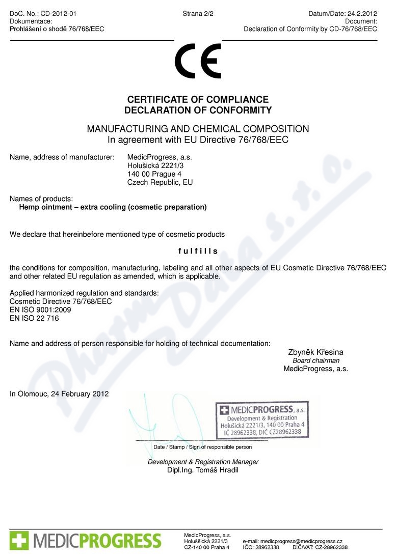 2 strany prohlášení o shodě: strana 1, strana 2,
