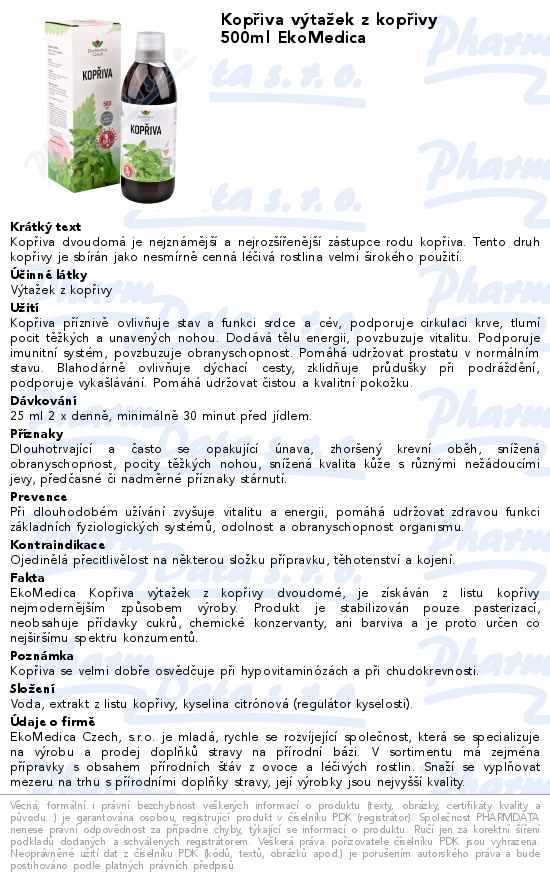 Kopřiva výtažek z kopřivy 500ml EkoMedica