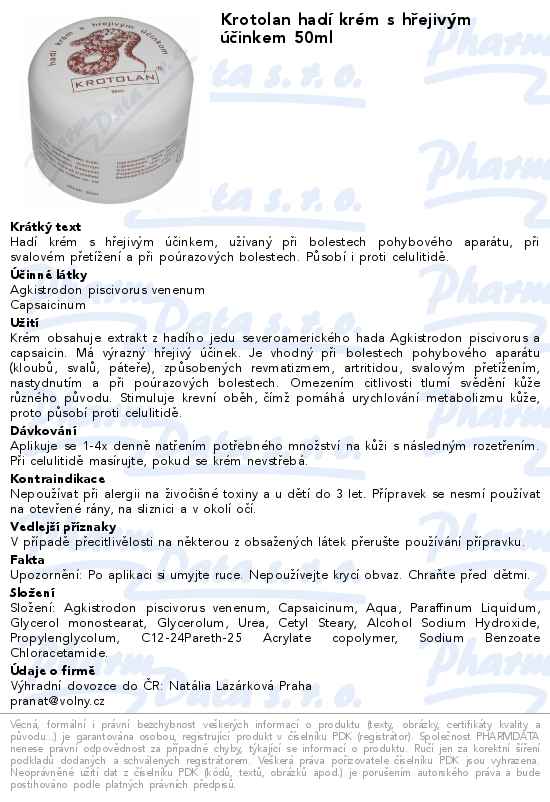 Krotolan hadí krém s hřejivým účinkem 50ml