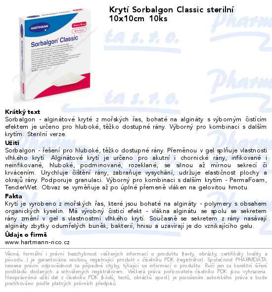 Krytí Sorbalgon Classic sterilní 10x10cm 10ks