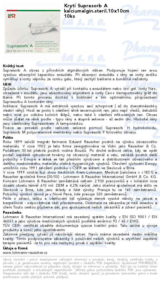 Krytí Suprasorb A kalciumalgin.steril.10x10cm 10ks
