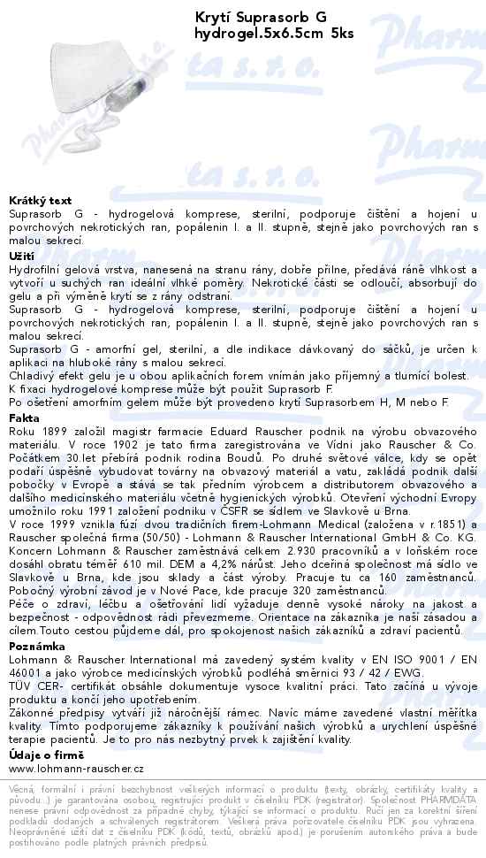Krytí Suprasorb G hydrogel.5x6.5cm 5ks