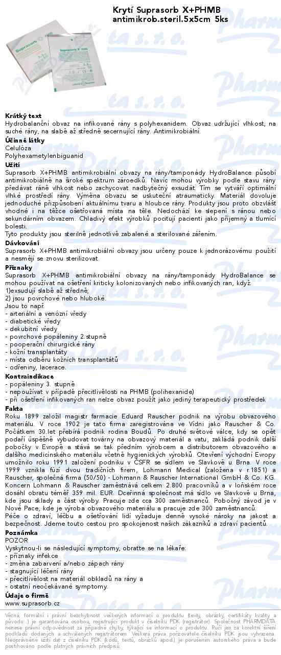 Krytí Suprasorb X+PHMB antimikrob.steril.5x5cm 5ks