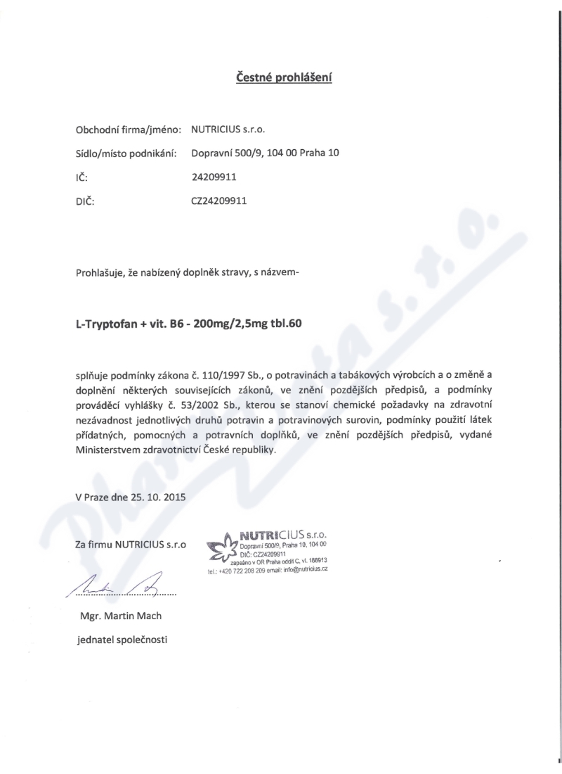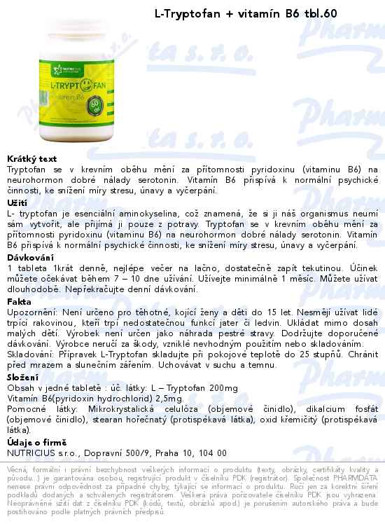 L-Tryptofan + vitamín B6 tbl.60