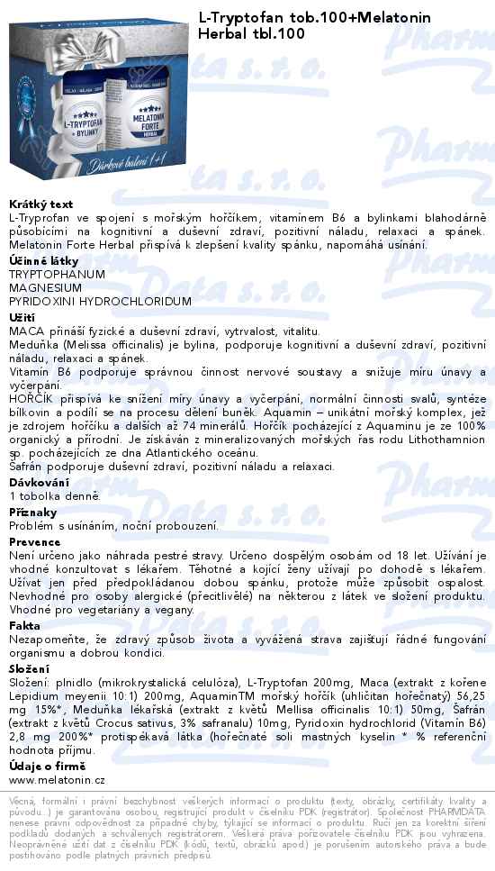 L-Tryptofan tob.100+Melatonin Herbal tbl.100