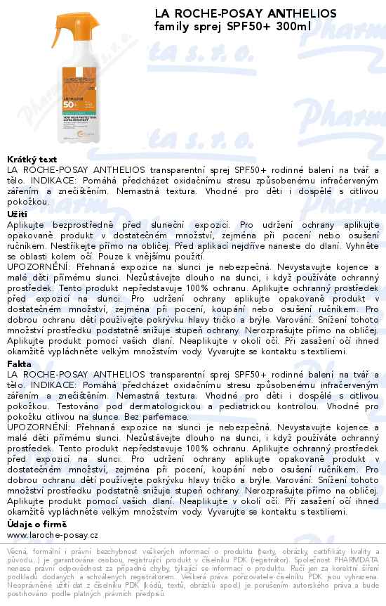 LA ROCHE-POSAY ANTHELIOS family sprej SPF50+ 300ml