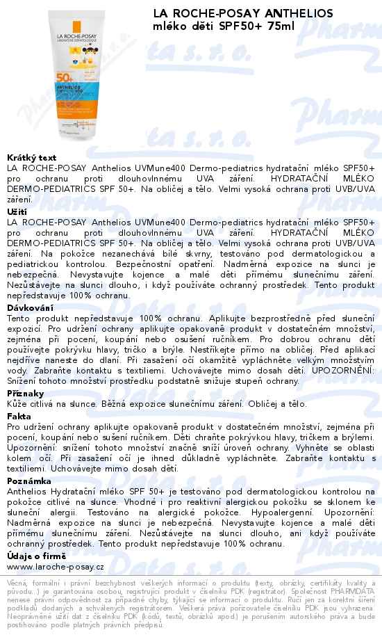 LA ROCHE-POSAY ANTHELIOS mléko děti SPF50+ 75ml