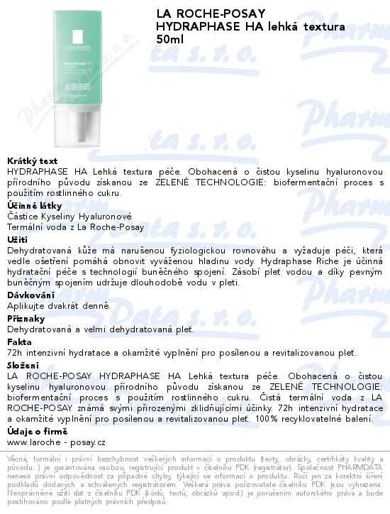LA ROCHE-POSAY HYDRAPHASE HA lehká textura 50ml