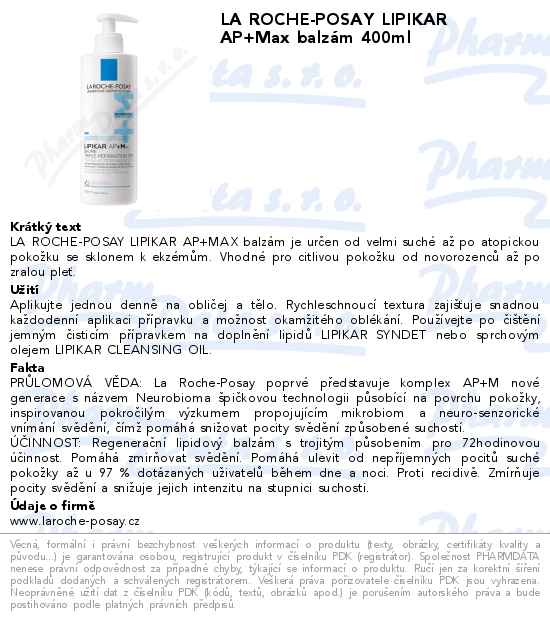 LA ROCHE-POSAY LIPIKAR AP+Max balzám 400ml