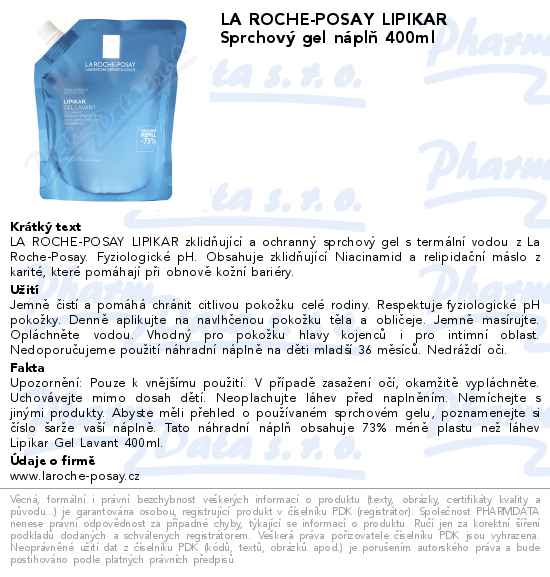 LA ROCHE-POSAY LIPIKAR Sprchový gel náplň 400ml