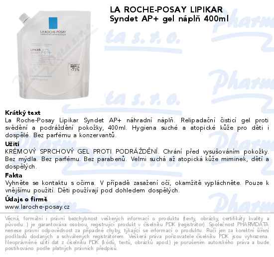 LA ROCHE-POSAY LIPIKAR Syndet AP+ gel náplň 400ml