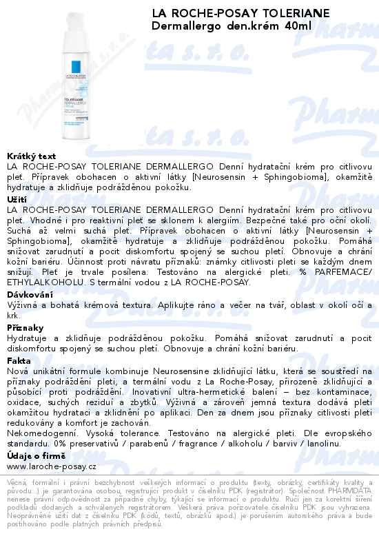 LA ROCHE-POSAY TOLERIANE Dermallergo den.krém 40ml
