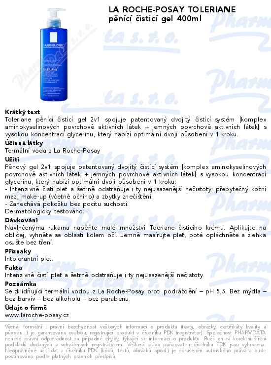 LA ROCHE-POSAY TOLERIANE pěnící čisticí gel 400ml